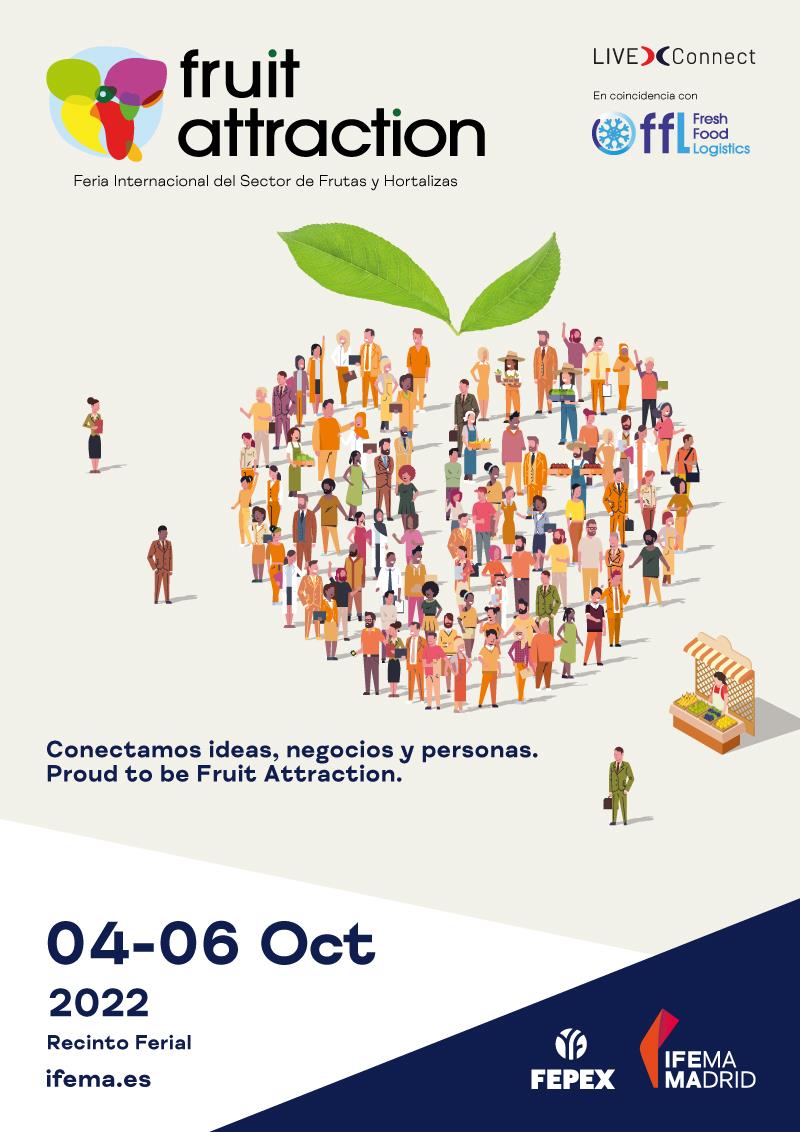 La 14ª edición de Fruit Attraction, organizada por IFEMA MADRID y FEPEX, se celebrará del 4 al 6 de octubre de 2022. Las empresas del sector hortofrutícola ya pueden solicitar su participación en este evento de referencia mundial para la comercialización de frutas y hortalizas. El próximo día 11 de abril finaliza el plazo prioritario para la elección de espacios.