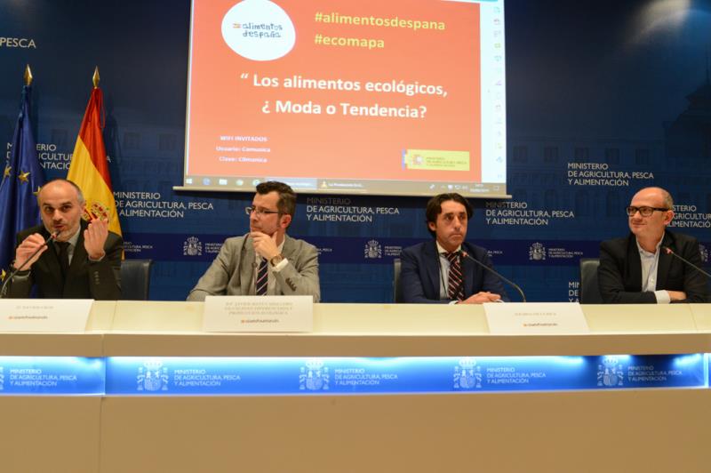 El director general de Industria Alimentaria, Jose Miguel Herrero y el  subdirector general de Calidad Diferenciada y Agricultura Ecológica del Ministerio de Agricultura, Francisco Javier Maté, que presidieron la jornada,  destacaron el constante crecimiento del sector ecológico en España que contó con 2.082.000 hectáreas en 2017 y se prevé un crecimiento del 5% en superficie, según los avances de 2018, del 6% en el número de operadores y del 11% en número de industrias bio. También se destacó el continuo incremento del valor de la producción interior que en 2017 superó los 1.828 millones de euros, lo que ha supuesto un incremento del 7% con respecto al año anterior. En cuanto a consumo, Herrero, informó de que el gasto per cápita de productos ecológicos es de 42,2 euros por habitante y año, frente a los cerca de 6 euros de hace 10 años.  En la jornada se presentó también la Feria Organic Food Iberia, organizada por el grupo internacional Diversified, con la colaboración de IFEMA y el apoyo también del Ministerio de Agricultura.