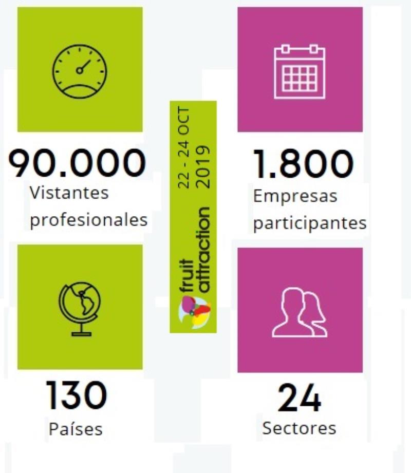 La undécima edición de FRUIT ATTRACTION tendrá lugar del martes 22 de octubre al jueves 24 en los pabellones 3, 4, 5, 6, 7, 8, 9 y 10 de Feria de Madrid, en horario de 9,30 a 19 horas.