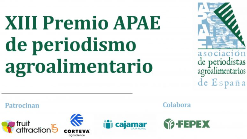 Los premios periodísticos de APAE cuentan con los patrocinios de la feria Fruit Attraction (premio de la categoría “Frutas y Hortalizas”), Corteva Agriscience (premio de la categoría “Innovación”) y Cajamar (premio de la categoría “Sostenibilidad Agroalimentaria”) así como con la colaboración de la Federación Española de Asociaciones de Productores Exportadores de Frutas y Hortalizas (FEPEX).