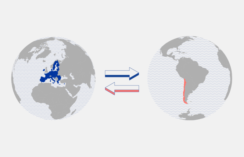 La UE y chile han firmado este mes de diciembre el acuerdo para la modernización del Acuerdo de Asociación actualmente existente entre ambas partes, que entró en vigor en 2005. El comercio hortofrutícola entre la UE y Chile es fuertemente deficitario para la UE, con una exportación de 186.000 euros y una importación de 569 millones de euros hasta septiembre de este año.